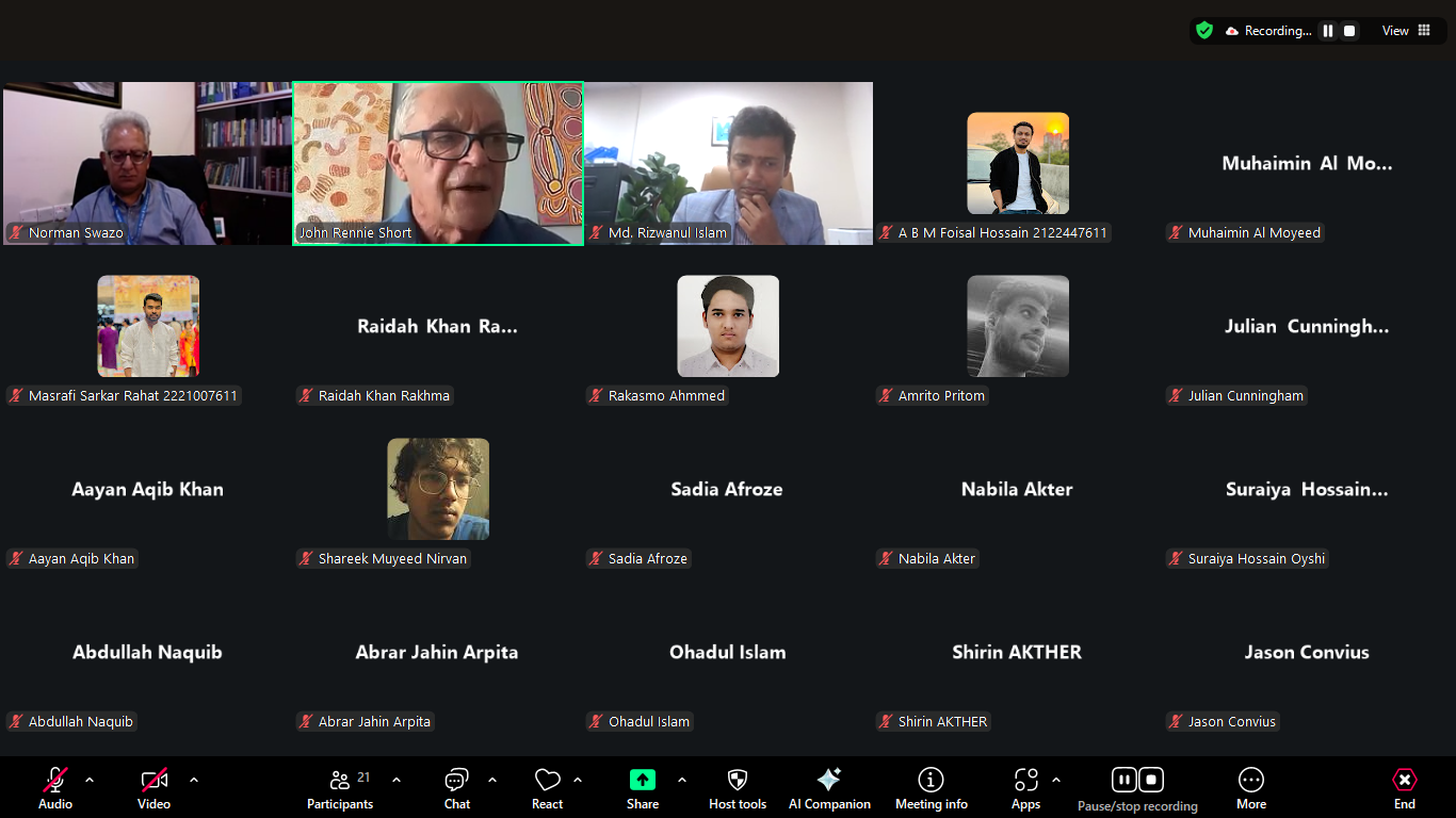 Papers were presented by Lubaba Sadat, Tanya Shakur, and Sharmin Jahan, undergraduate students of SHSS, North South University on 27 February 2025 at the Undergraduate Colloquium Series, Spring 2025.