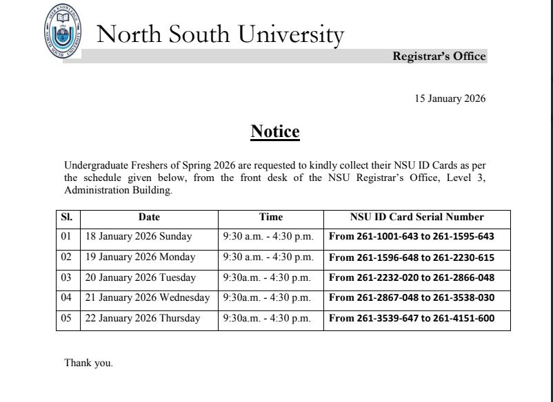 UG Fresher of Spring 2026: Please Collect the RFID Card