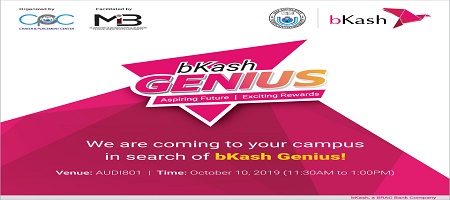 bKash Limited had organized a workshop to have a thorough discussion about their program named “bKash Genius”, with the students of NSU. bKash Genius is an initiative taken by bKash for the students of numerous public and private universities where they can work as a representative of bKash. The workshop was held to discuss the scope and rewards associated with the representatives’ position which is known as bKash Genius.