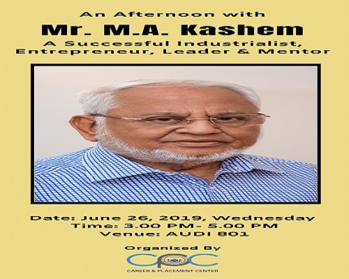 An Afternoon with Mr. M.A. Kashem was an event in honor of Mr. M. A. Kashem, where he talked about his book, ‘Mr. M. A. Kashem: A Living Legend” and shared his experiences of failure and success. This event was co-organized by CPC & Student Affairs. Mr. M. A. Kashem was our honorable guest along with other executive body of CPC & Student Affairs. The event was filled with motivational talks by our honorable guest and our very own, Director of CPC, Mohammad Khasro Miah.