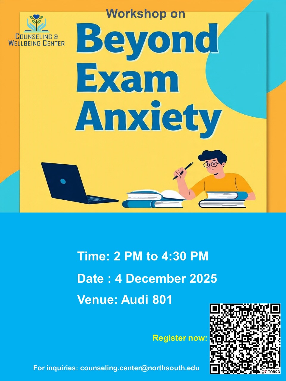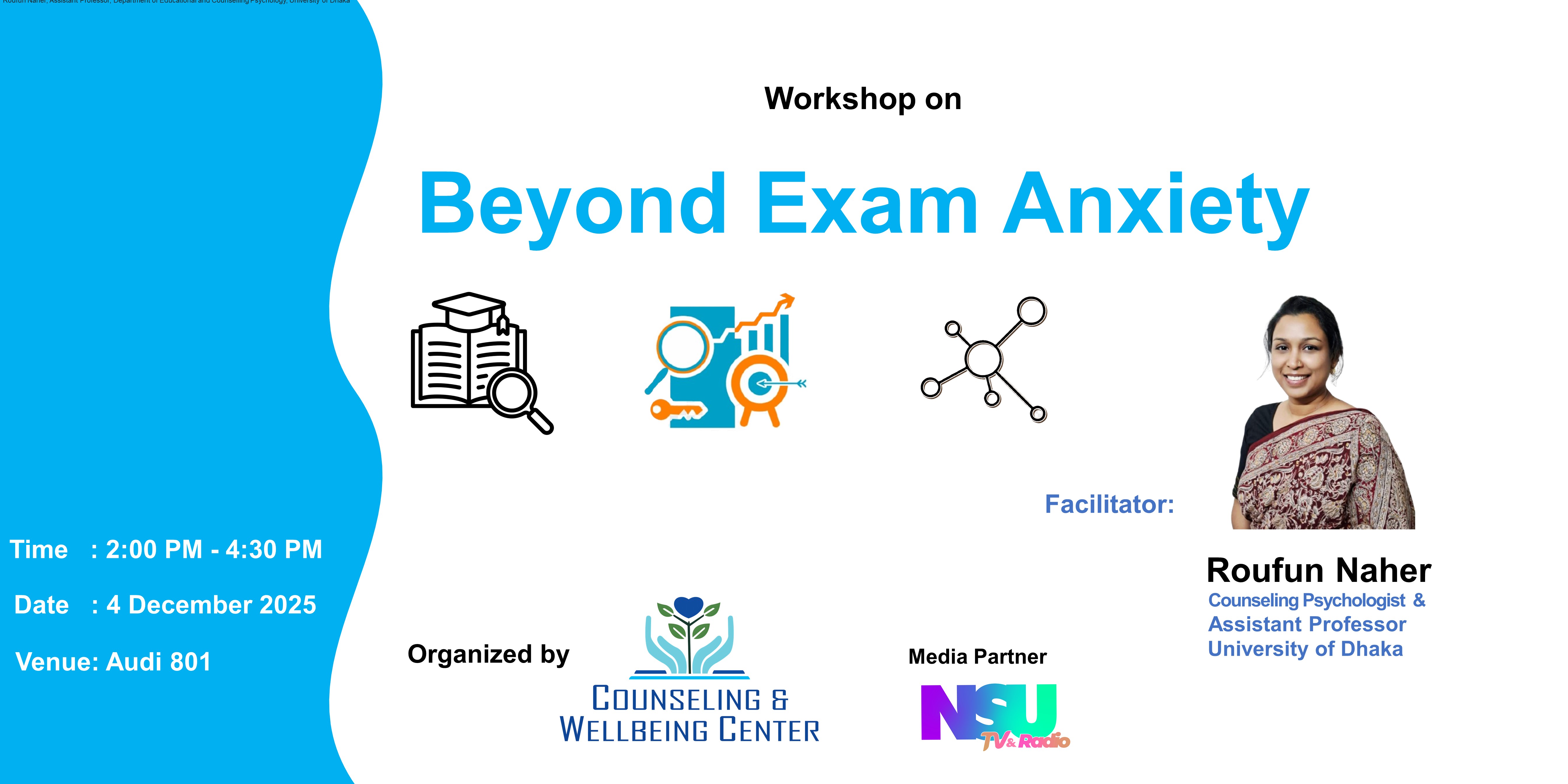 The Counseling & Wellbeing Center(CWC) has organized a workshop titled "Beyond Exam Anxiety" for the NSU student community.