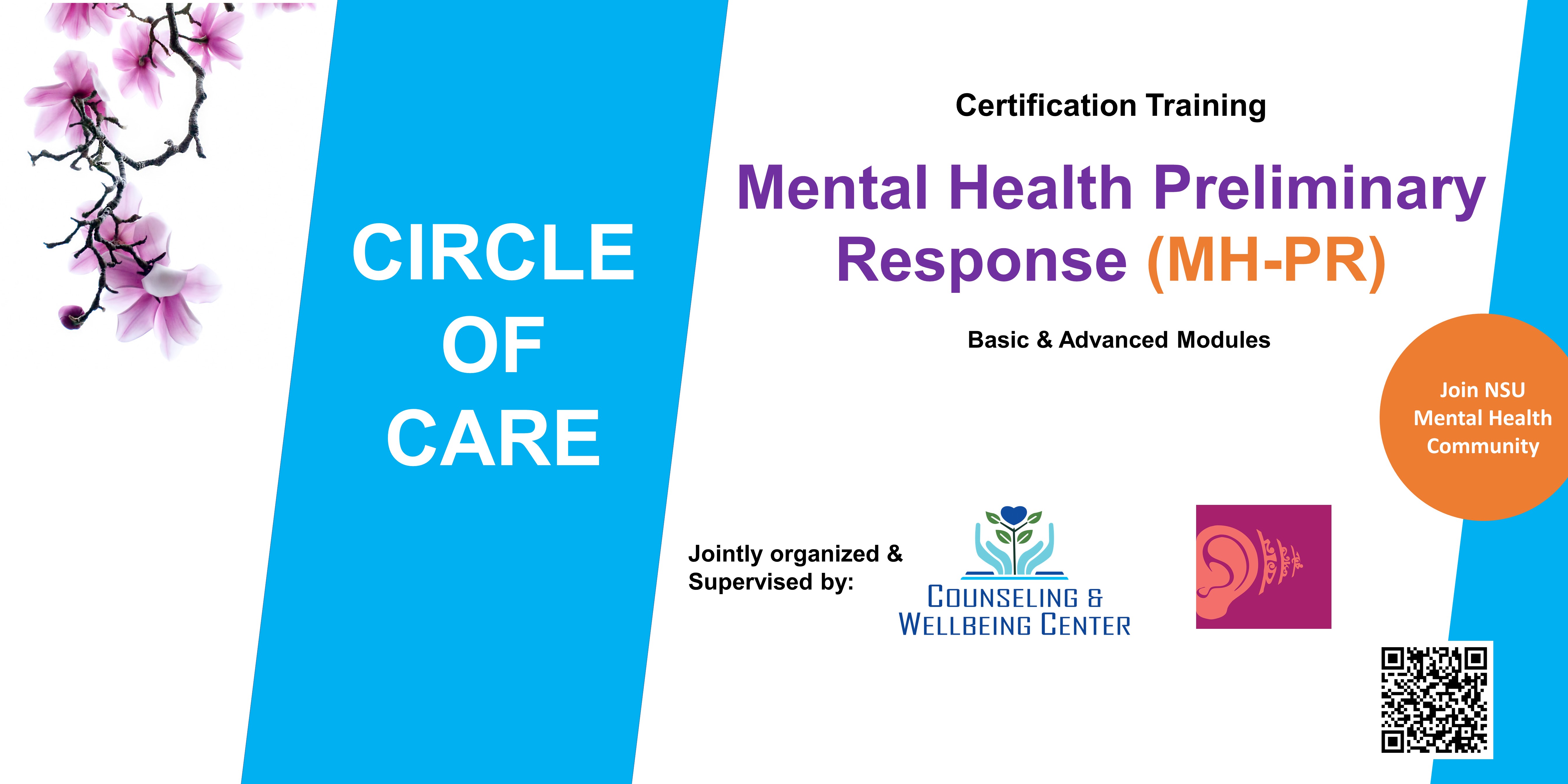Counseling and Wellbeing Center (CWC) in collaboration with Kaan Pete Roi (Bangladesh's first and only emotional support and suicide prevention helpline) is going to organize a certified training, " Mental Health Preliminary Response (MH-PR)" for the student community.